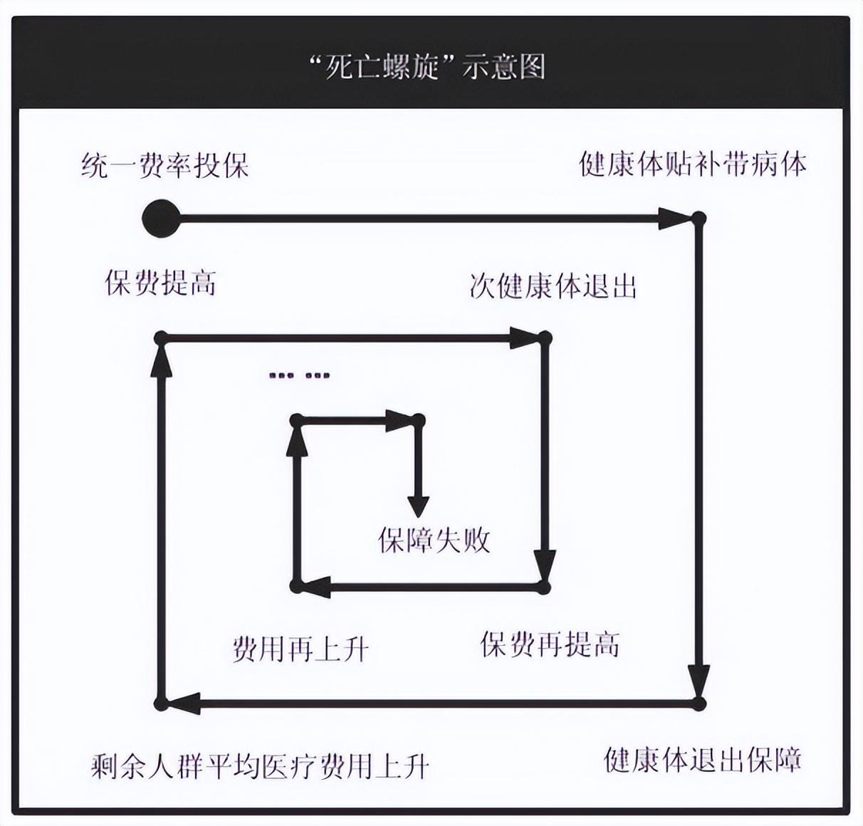 这固然可以降低赔付风险,但会带来另一种潜在的后果:随着时间周期拉长,健康的年轻人会因“不得病零报销、生小病不能报”而不再续保;为了增加收入,险企不得不提高保额,导致亚健康人群和已购买商业健康险用户退出惠民保;这样一来,最后续保的都是赔付风险高的老年人、带病体;如此循环下去,就会陷入“死亡螺旋”。