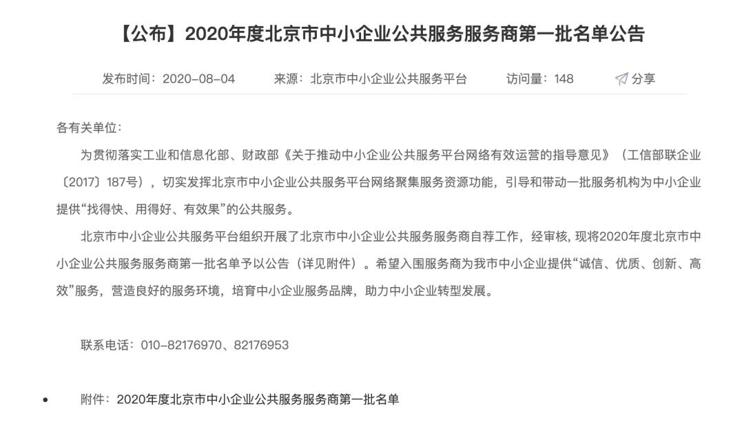 8月3日,ﻪ2020年度北京市中小企业公共服务服务商第一批名单公告,北京优全智汇信息技术有限公司(简称:保准牛)入选。与之一起入选的还有美团点评、中细软、用友等知名企业。本......