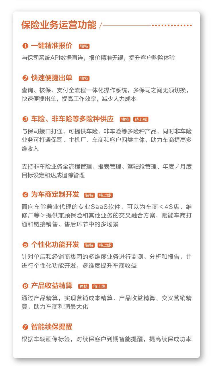 这一系列的服务和支持都是基于全优车在各保司的协助和支持下,根据监管政策要求以及基于对监管政策的详细解读和预判进行的。而为了能够更好地满足车商业务需求,在不影响车商业务运营的情况下,助力它们能顺利切换到新系统,全优车也对车百灵系统进行了持续升级。如,车百灵系统在陆续与头部各保司完成授权,实现与保司的API直连,以确保能够满足监管的同时为车商提供稳定、快捷的询价、报价、出单功能。