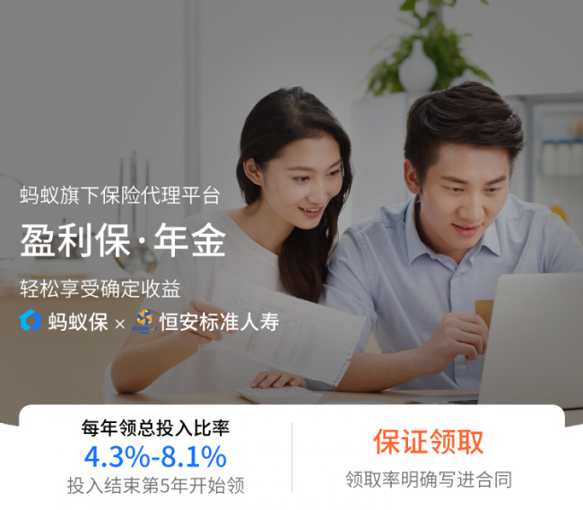 近日,恒安标准人寿互联网专属中长期年金保险——盈利保·年金(备案名:恒安标准智慧盈年金保险(互联网))正式登陆蚂蚁保,这是继“恒安标准爱佑保恶性肿瘤疾病保险(互联网)”之后,恒安标准人寿在蚂蚁保上线的又一款互联网定制产品。据悉, “盈利保·年金”是一款传统型年金保险,保单利益确定,安全稳妥,助力客户稳健穿越经济周期,实现财富保值增值。
