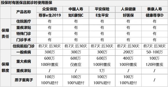 这几款产品中,“E生平安”“尊享e生2019”“好医保”这三款产品的保障都很全面,相差不多,基本可以代表目前市场中同类型产品的最高水平了。