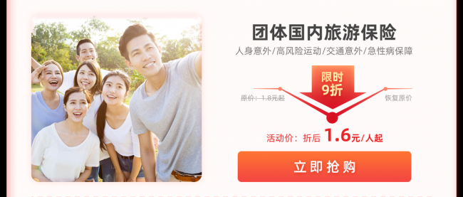 为了让大家有一个开心愉悦的旅途,平安好生活保险商城将推出暑期特惠、“平安”一夏活动,在此期间购买团体国内旅游险能够享受到更多的福利。平安团体国内旅游险活动时间从8.5~8.25分三期进行,个人保费低至1.6元起,连一瓶矿泉水的价格都没有,花极少的钱就能买到极大的”心安“,拒绝囧途的发生。